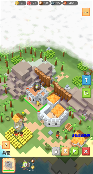 1、制作多种建筑,包括城墙.瞭望塔和兵营等,每个建筑都有不同的功用和属性。