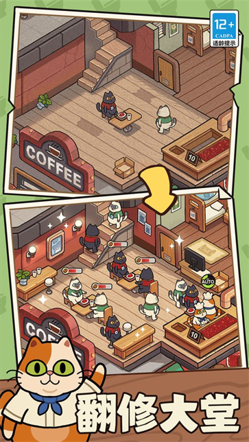 3、玩家需要合理分配资源,用于店铺装修、猫咪照顾和咖啡制作。