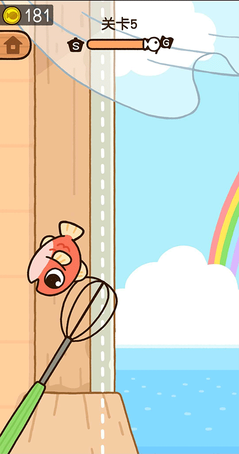 操作简单,通过滑动屏幕控制咸鱼的飞行高度,让其贴在各种障碍物上再继续跳跃,