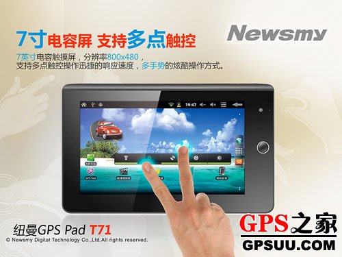 作为一款平板电脑和导航仪的结合体,Newsmy T71沿袭黑色经典,0.8CM超薄机身,完美地呈现出了纤薄的魅力。7英寸电容屏,分辨率800×480,支持多点触控操作,迅捷的响应速度,带给你舒适的操作体验。