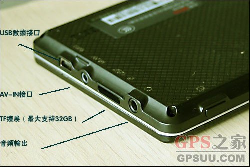 性能特点: 艾酷A510采用了专门为CMMB数字电视度身定做的新款外形,整体造型更加时尚、动感。正面采用金属拉丝的黑色装饰条加上银色的中框,工艺非常的细腻。 艾酷A510背面采用了细方格网纹处理,一方面增加了美观性,同时令机器的背部附着力更好。机器的主要接口集中在左侧,有USB数据接口、AV-IN无线倒车后视接口、TF卡插槽、音频输出接口。