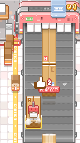 3、我们要做的是跳到纸箱上,包装纸箱,包的越多得分就越高。