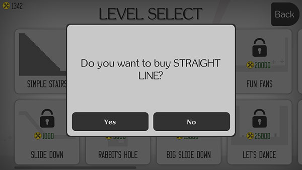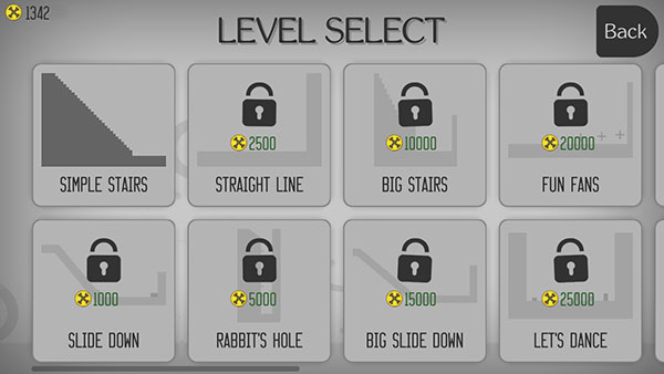 关卡页面如图,除了第一关,其他的关都需要有足够的金币才能解锁,我们可以重复玩第一关,获取到足够的金币,才能解锁第二关。