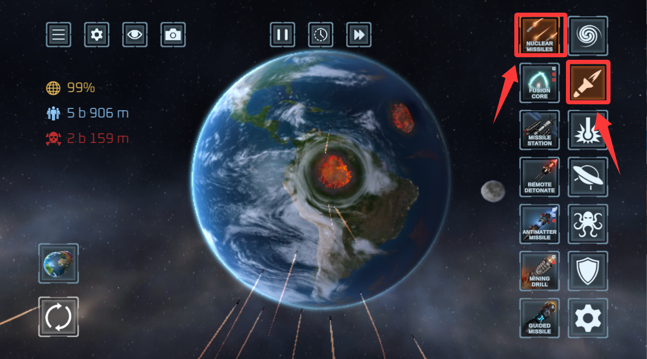 在这款游戏中有着非常多的武器来毁灭星球,流行打击算是比较正常的一种了,需要较多次才能够生效。