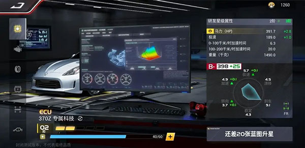 以370Z为例,将引擎从等级1升级到等级2:马力会从369提升至380,0-100千米/时加速时间会从6.5降低至6.4。