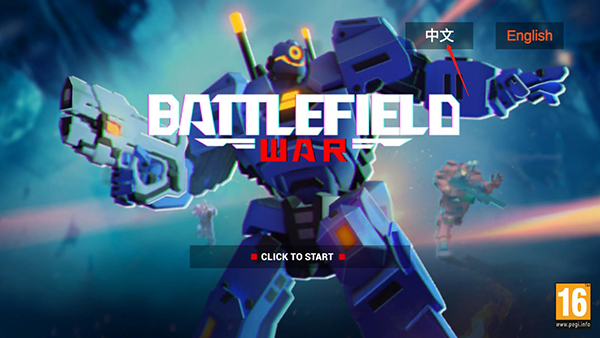 1、首先进入机器人枪战游戏,游戏默认为英文,可在右上角选择中文切换语言。