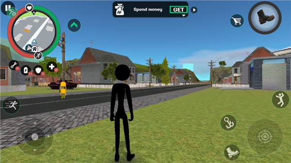 2、每当角色的附近有车辆时,屏幕的左方会有一个汽车头的按钮,点击之后就会让角色就会抢夺车辆,操纵车辆的话在屏幕右下角有两个踏板,左边是删除的按钮,右边是油门,屏幕左下角会有一个类似方向盘的东西,是用来控制方向的,对汽车的操纵一定要好,因为这是我们快速获取金币的最好的办法