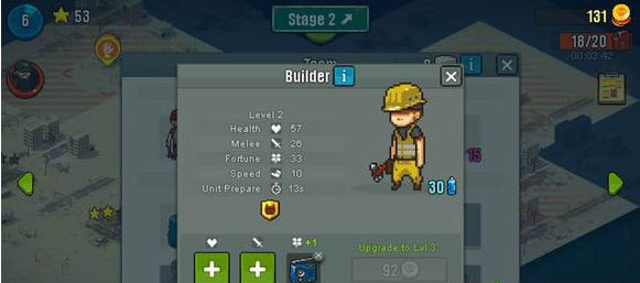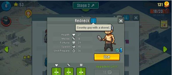 兵种,是游戏设计的一个重要元素,也是对抗尸潮的核心关键。已收集解锁的兵种,在战斗中会以牌面形式列出,通过时间累积获得的能量,可以放出不同的兵。兵种之间也有不同角色:灵敏机动的输出、皮厚能抗的肉、拿枪射击的远程、迅速的突袭等等,辅以油桶、医药箱、发电机等战中物资辅助战斗,才能与敌方多类的僵尸对抗。