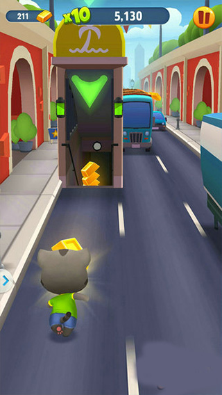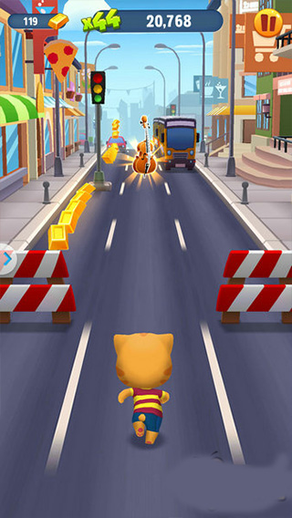 2、汤姆猫跑酷中采用了Q版的画风和主题,在跑酷的过程中玩家需要收集大量的金币以及道具,不断发现新场景。