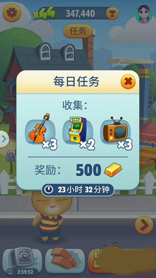 4、建造神奇的家园:用你收集的金条为会说话的汤姆猫家族建造家园!