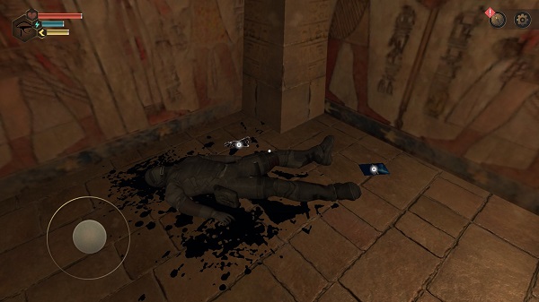 1、游戏开局,将对游戏的背景进行简单描述,当玩家进入金字塔后,真正的玩法正式开始,滑动屏幕观察四周。