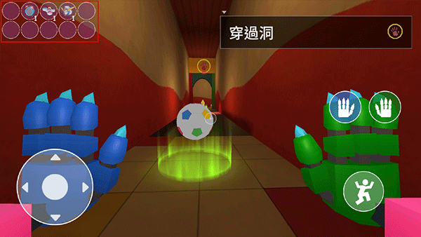 2、这里以玩具工厂为例,游戏的操作非常的简单,左边控制人物移动,右边控制机械手、跳跃;