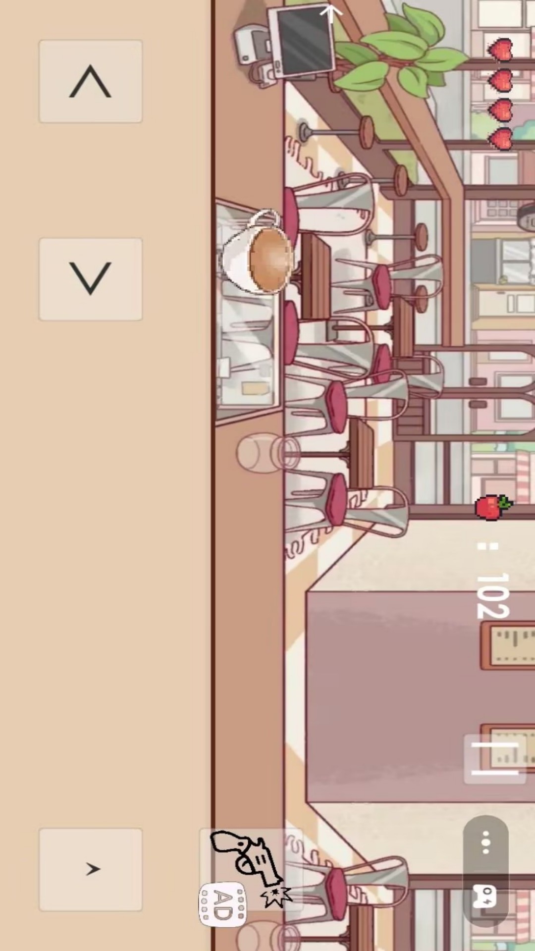 3、选择第一个模式,你需要操控咖啡进行闯关,收集一路上的草莓,左边是进行前后移动,右边是跳跃。