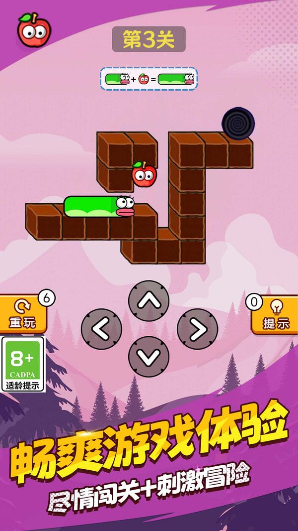 2、按关卡顺序挑战,完成当前关卡的 “吃食物 + 进洞口” 目标,解锁后续难度更高、地形更复杂的关卡。