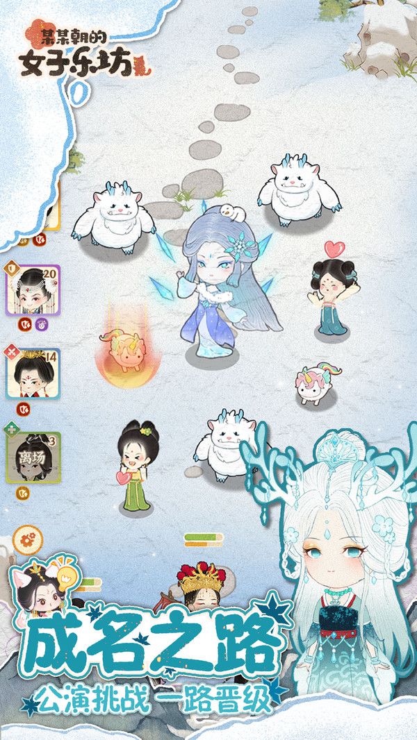 收集你最爱的美人,练习成团,文、武、乐、舞、画、颜、戏,全方面提升业务水平,作为某某朝第一女子天团,我们要有颜、有艺、还有才,然后惊艳所有人!!