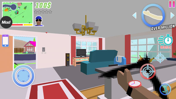 盗贼战争MOd菜单版(Dude Theft Wars)是一款开放度极高的沙盒类游戏,游戏采用了横版2D画面设计,拥有精美写实的卡通画面风格,给玩家一种清新脱俗的感觉,虽然是卡通画风,但是游戏地图非常的庞大,在这个庞大的地图中,你可以做你想做的事情,玩法自由度极高,玩法类似于经典游戏侠盗猎车。只不过这款沙盒模拟器盗贼战争游戏的地图和场景的设计的更加的别出心裁,提供了海量的地图可供玩家选择发挥,给你足够空间,你可以和警察打架,可以开车去你自己想去的任何地方,还可以打造、装扮一个自己的房子,根据玩家们的想象力打造一个梦幻般的世界。另外游戏还提供了很多的任务等你来完成,大量的枪械供你选择,每当完成一个任务都可以获得一定的物资,让你可以不断的提高自己的实力,变得更加的强大,更多好玩的玩法等着你去解锁发现,喜欢沙盒类的玩家们不容错过。沙盒