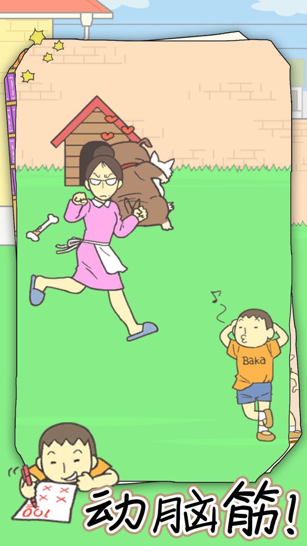 3、角色表情夸张逗趣,试卷上的鸭蛋图案萌态可掬,失败时妈妈叉腰瞪眼的卡通形象,让解谜过程欢笑不断。