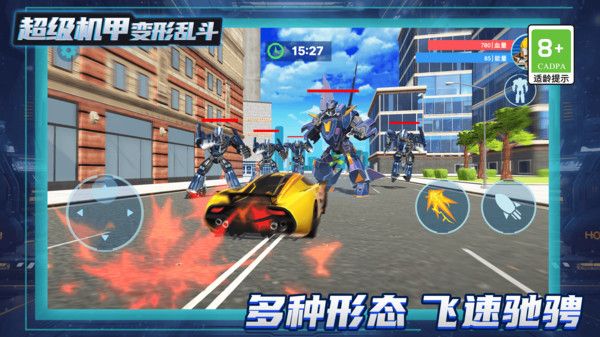 超级机甲变形乱斗这是一款动作闯关类游戏,你需要驾驶机甲开始战斗,你需要消灭所有的敌人哦,游戏里多个形态可以自由的切换哦,多个武器可以选择哦,多个关卡等你挑战哦,超大的地图等你挑战哦,超级机甲变形乱斗游戏适合各个年龄段的玩家哦,喜欢的快来下载吧!