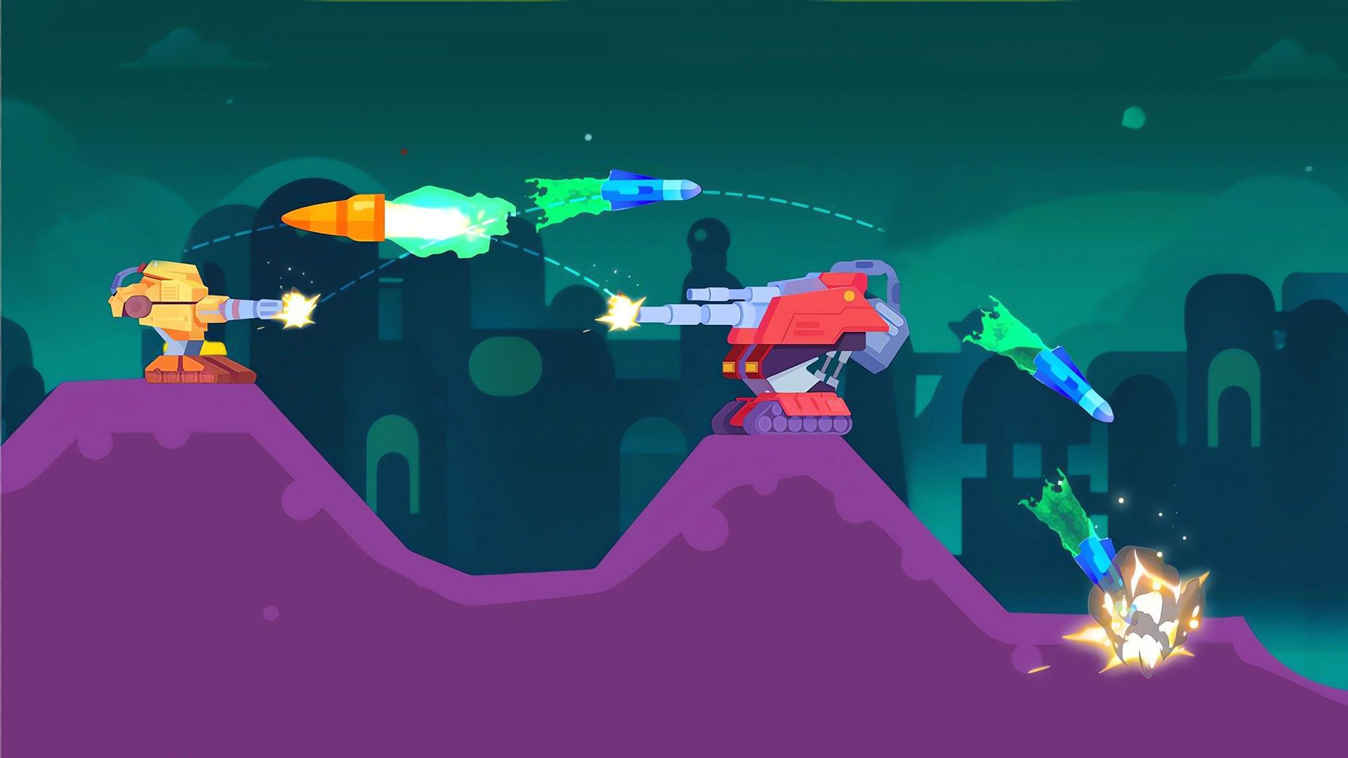 1、采用回合制战斗,需在每个回合中策略性地移动坦克和调整射击角度,以击败对手。