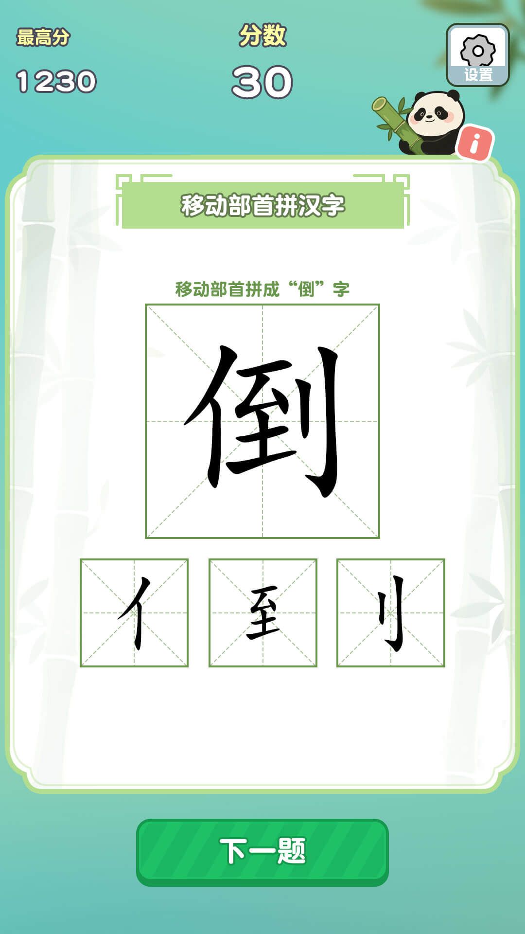 2、在 “移动部首拼汉字” 关卡中,拖动分散的 “亻”“至”“刂” 等部首,将其组合成指定汉字,验证正确即可通关。