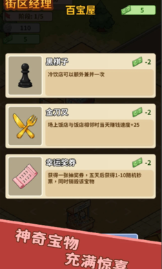 1、百宝屋系统提供稀有道具,如黄金招牌提升知名度,音乐喷泉吸引滞留客群。