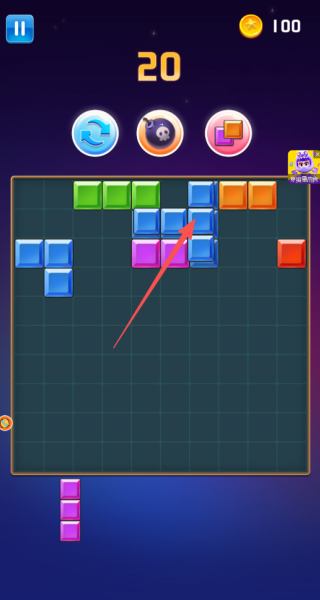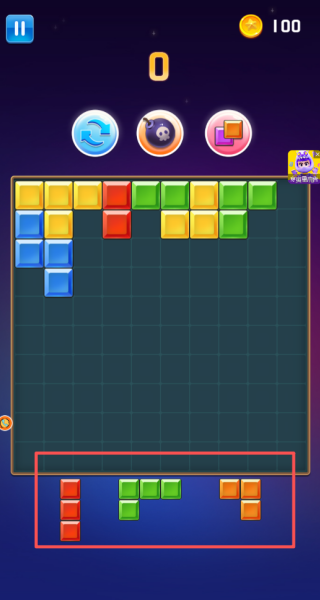 2、方块的形状会随机的出现,你可以灵活的选择放置的位置。