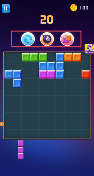3、通过完成当前关卡的挑战,解锁新的关卡和更复杂的方块组合,提供了多种道具。