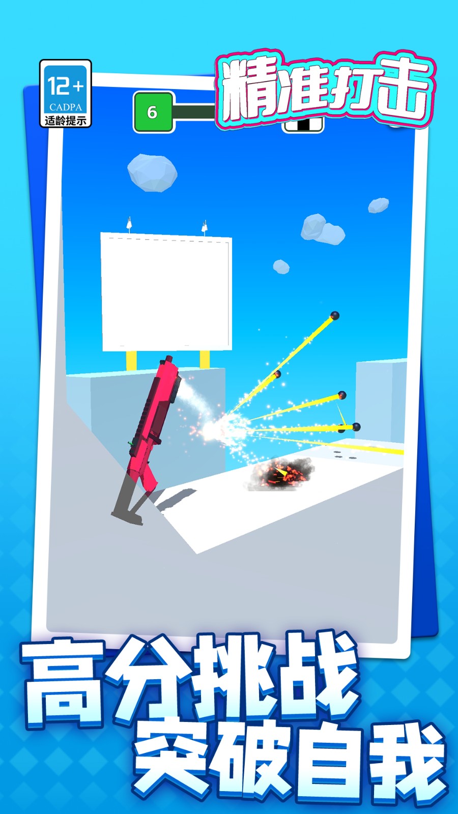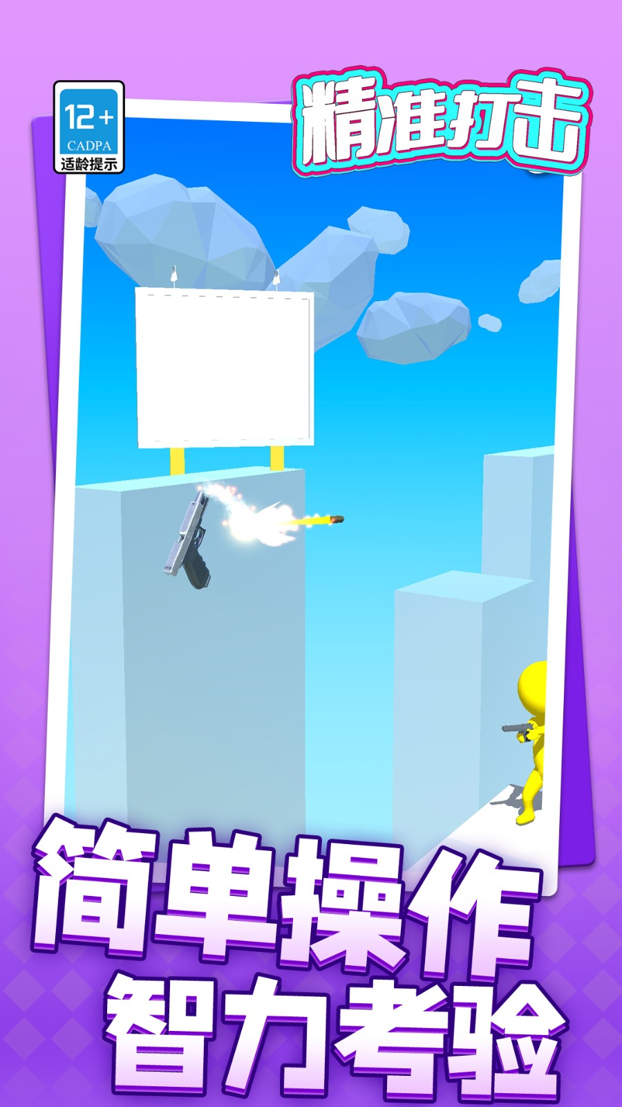 精准打击是一款竖屏玩法的射击闯关游戏。闯关的主角是一把把不同型号的手枪,点击屏幕手枪会发射子弹,我们需要通过射击时产生的后坐力,来调整射击角度来击败关卡中的巨型橡胶人,成功击败就能够获取闯关胜利,解锁更多不同的武器继续挑战吧!