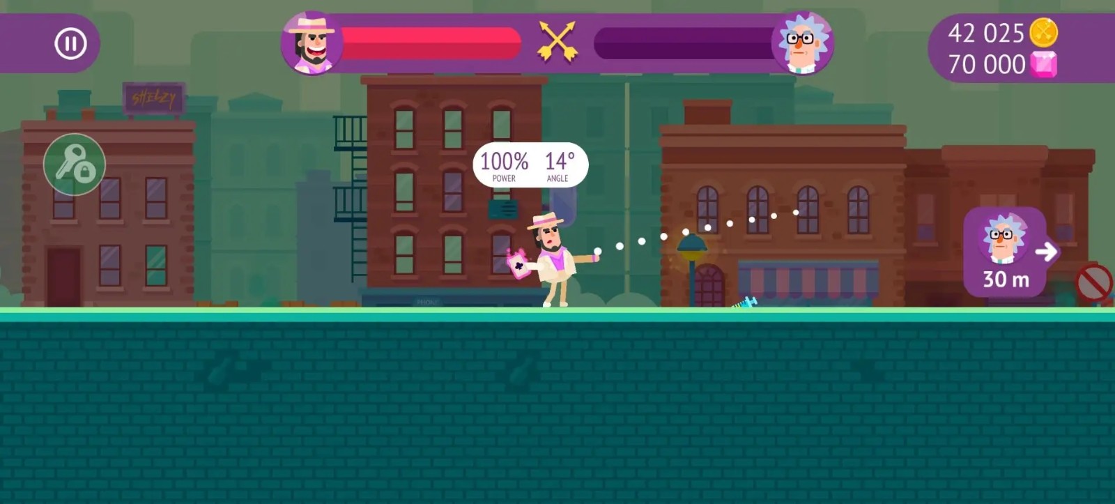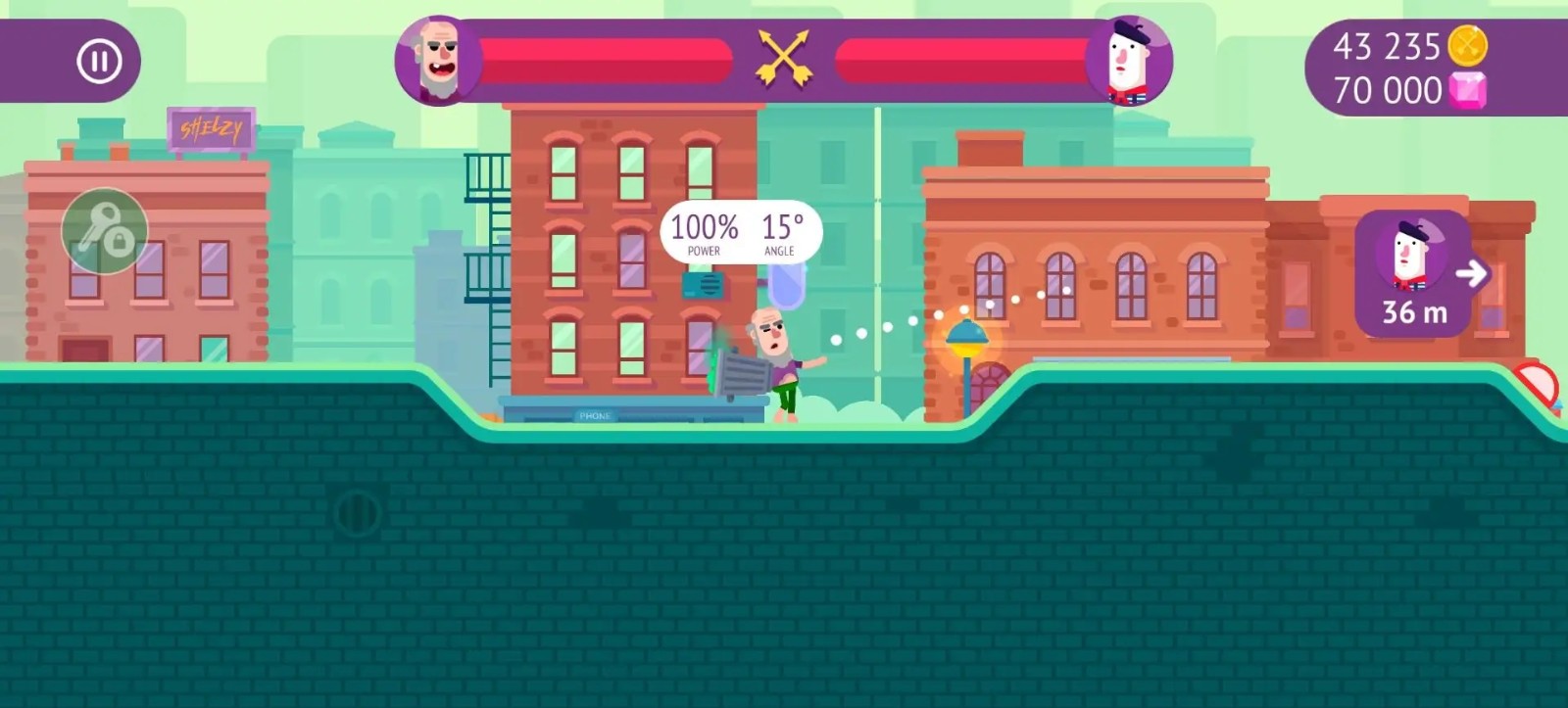 玩家在游戏中需要利用了自己手中的武器以抛物线的形式飞射对手
