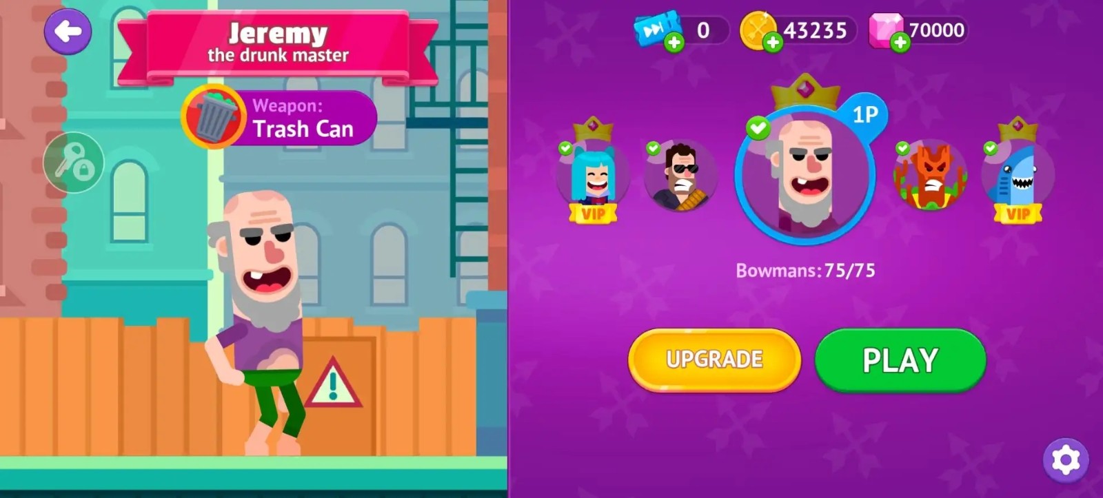 15、冰矛男:多次点击屏幕可以分裂小支箭,在冰矛到达对方头部时快速点击,可以达到多次爆头的效果,刷金币效果很好,楼主最多打出过五次爆头。