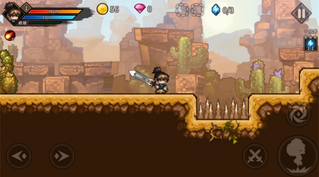 4、选好关卡后就会正式开始,正式开始后左边控制左右方向,右边是跳跃、普攻和技能按键。