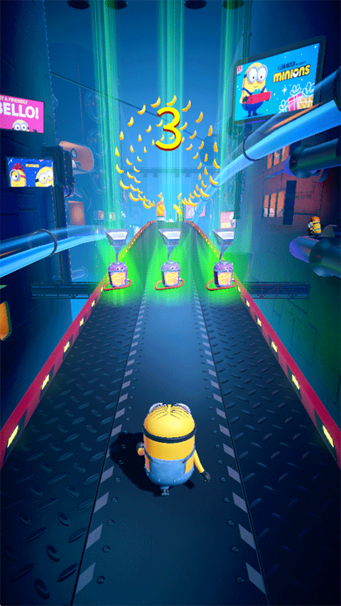 《神偷奶爸:小黄人快跑》采用了全3D画面,场景细腻,立体感十足。游戏视角会随着奔跑的路径不停更换,不会有其他跑酷那种千篇一律的感觉。奔跑路上会遇到各种机关和障碍,会产生不同的有趣玩法,非常动感。弹簧床、滑梯、荡秋千,这款游戏把许许多多的趣味元素融入在跑酷的过程当中。