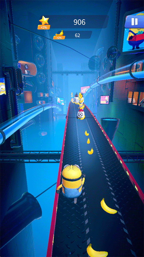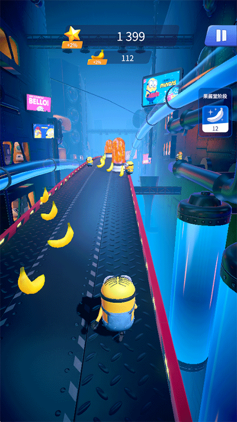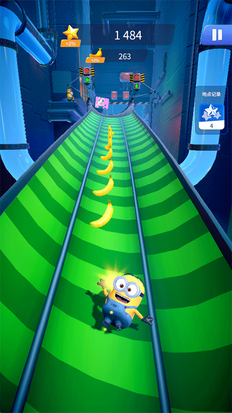 4、另外,在“小黄人赛跑”模式中,撞到障碍物也不会 GAME OVER,但会大幅减速,让你落后其他小黄人,千万要注意哦!只有夺得“小黄人赛跑”的终极宝座,才能成为史上最邪恶的坏蛋!你准备好了吗?