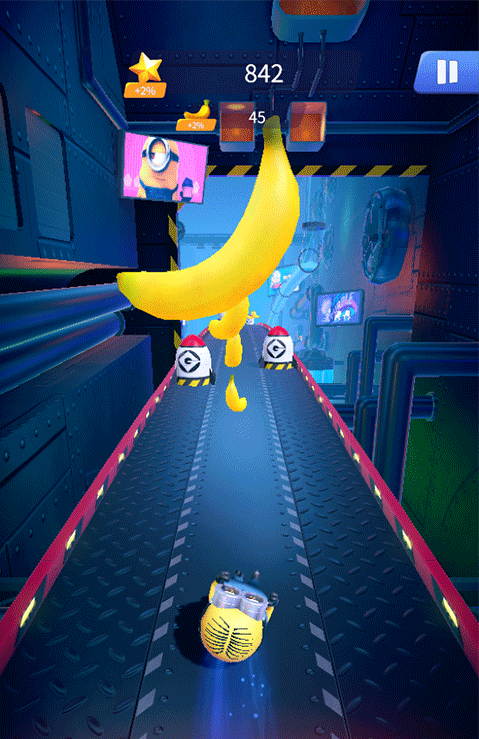 1、游戏中小黄人将会面临各种危险的陷阱,不过玩家只要轻松通过左右滑动、跳跃等方式就可以躲开陷阱,顺利获得自己想要的香蕉。