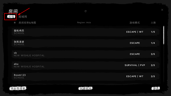 2、然后点击“在线”,玩家可以选择好友或者其它玩家创建的房间并进入;