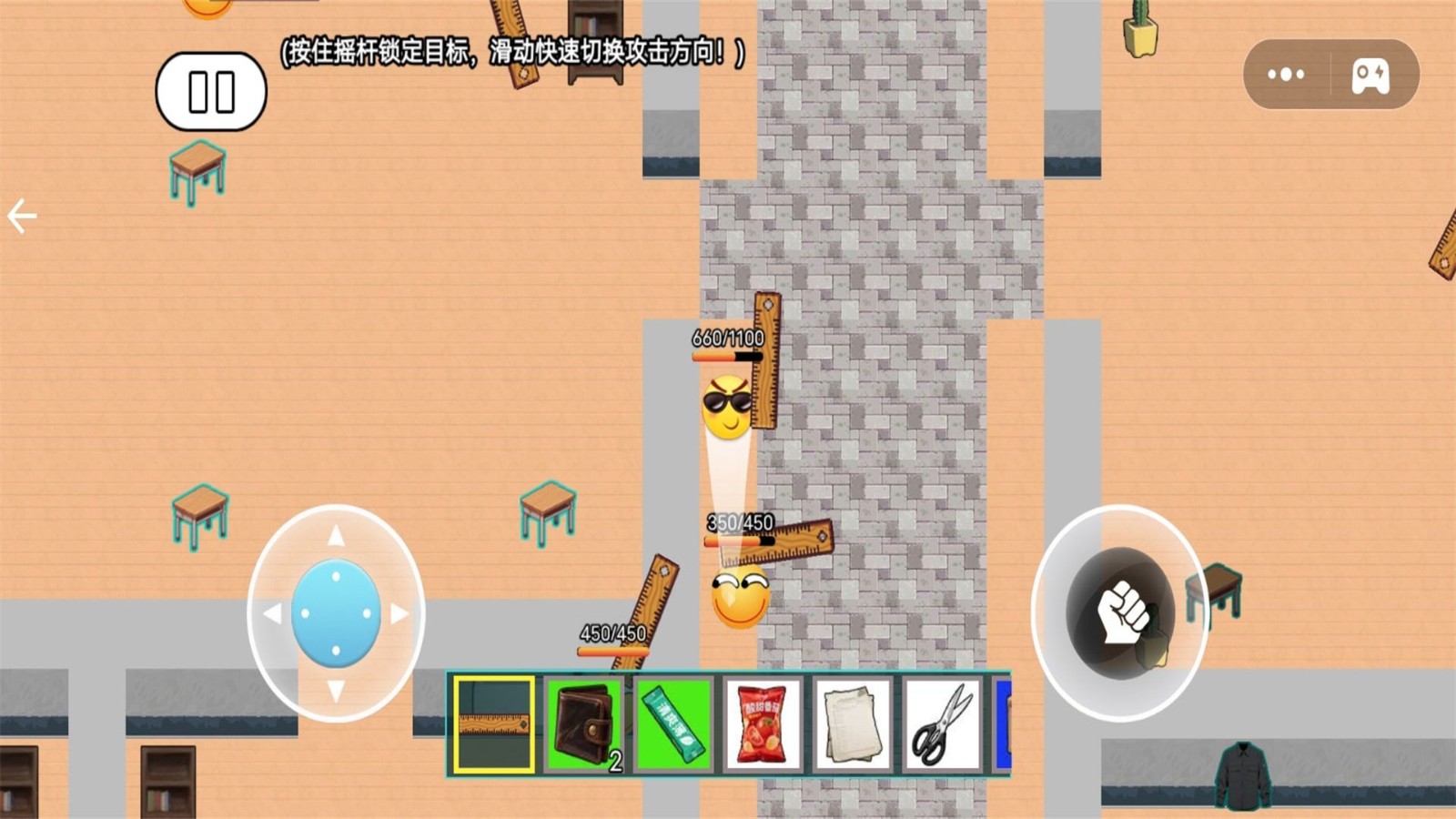 5.使用左侧摇杆来控制行动,右侧控制攻击,躲避NPC搜刮更多的物资,并成功撤离吧!