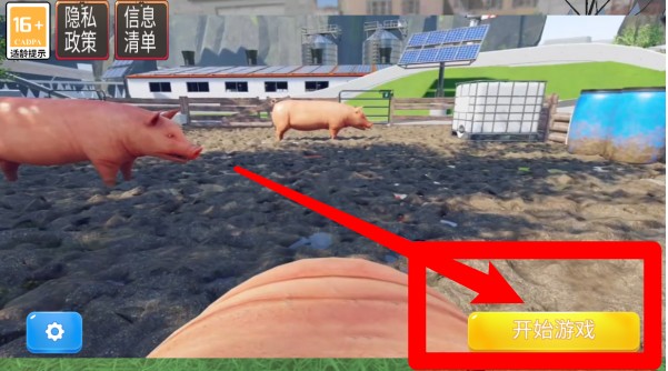 1.开始游戏:点击右下角的开始按钮即可进入冒险场景,玩家将以第一视角化身小猪,开启充满紧张与乐趣的全新挑战旅程。