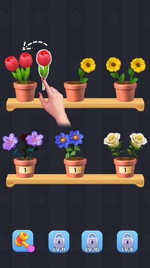 2、颜色与造型的搭配十分考究,同种花卉或许会因形态的差异而不易辨别,必须经过细致观察方可精准匹配,这进一步提升了挑战性与趣味性。