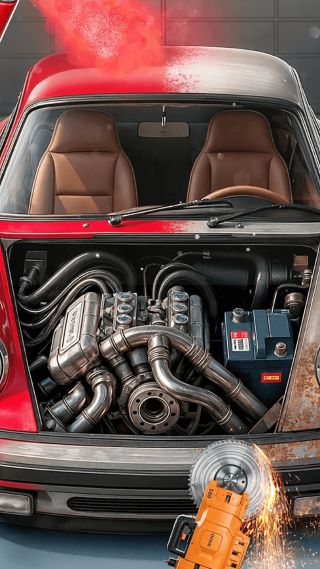 2、选取对应工具开展修复,用高压水枪冲洗车身污渍、海绵擦拭细节,再用扳手更换损坏零件,逐步推进翻新进度。