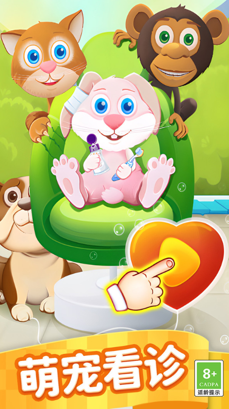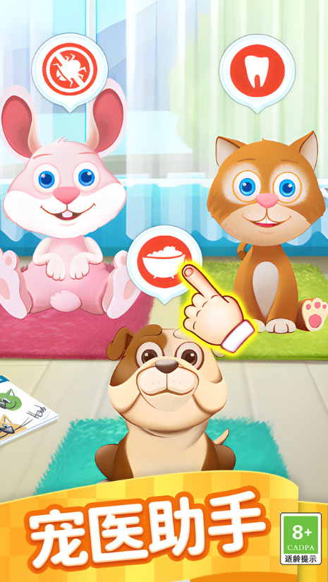 1、通过触摸与拖拽操作,完成洗澡、梳毛、剪指甲等护理步骤,简单易上手。