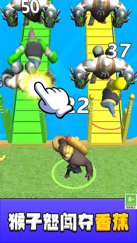 1、角色设定新颖有趣,操控一只性格暴躁但动作敏捷的猴子,带来新鲜欢乐的游戏体验。