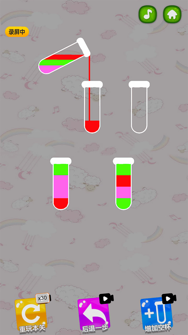 3、随着关卡推进,颜色和杯子数量增加,难度变大,需要更多思考和策略,考验逻辑能力。