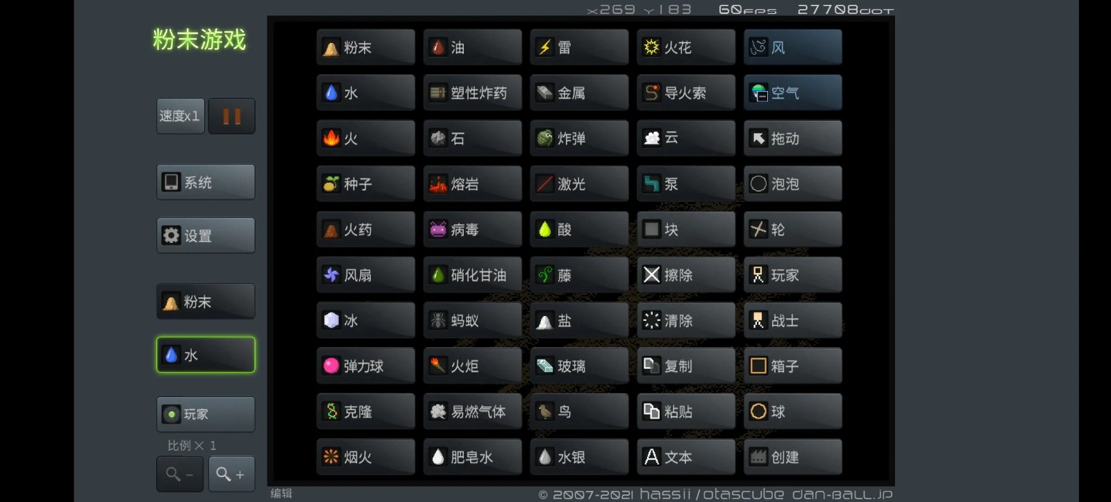 4、[BLOC] : 墙(风与任何粉末均无法通过,预设的外围墙可用功能消除)