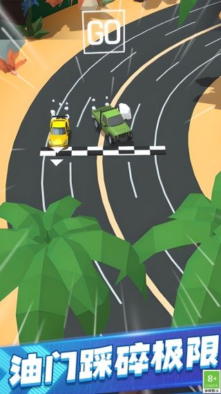 3、设计 “油门踩碎极限” 的竞速氛围,赛道节奏紧凑,通过速度与技巧的结合,凸显赛车游戏的热血感。
