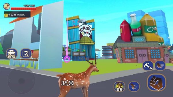 2、3D卡通画面风格诙谐,搭配鹿的搞笑动作与破坏场景,营造出轻松欢乐的氛围,增强游玩趣味性。