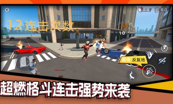 1、操控超人英雄在城市街道滑行,通过点击或滑动操作躲避障碍物,同时搜寻帮派与恶棍的踪迹。