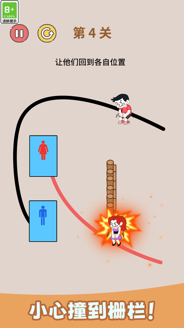 4.对于固定的墙壁,玩家需要画一条避开它们的路线。