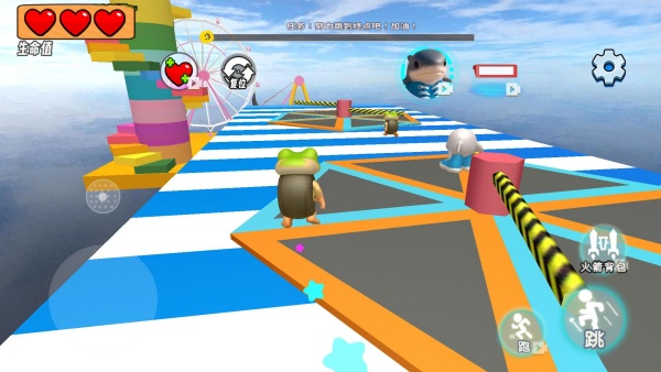 1、配备火箭背包等实用道具,为跑酷增添策略性,玩家可灵活运用应对困境,打破单一操作节奏,提升游戏趣味性。