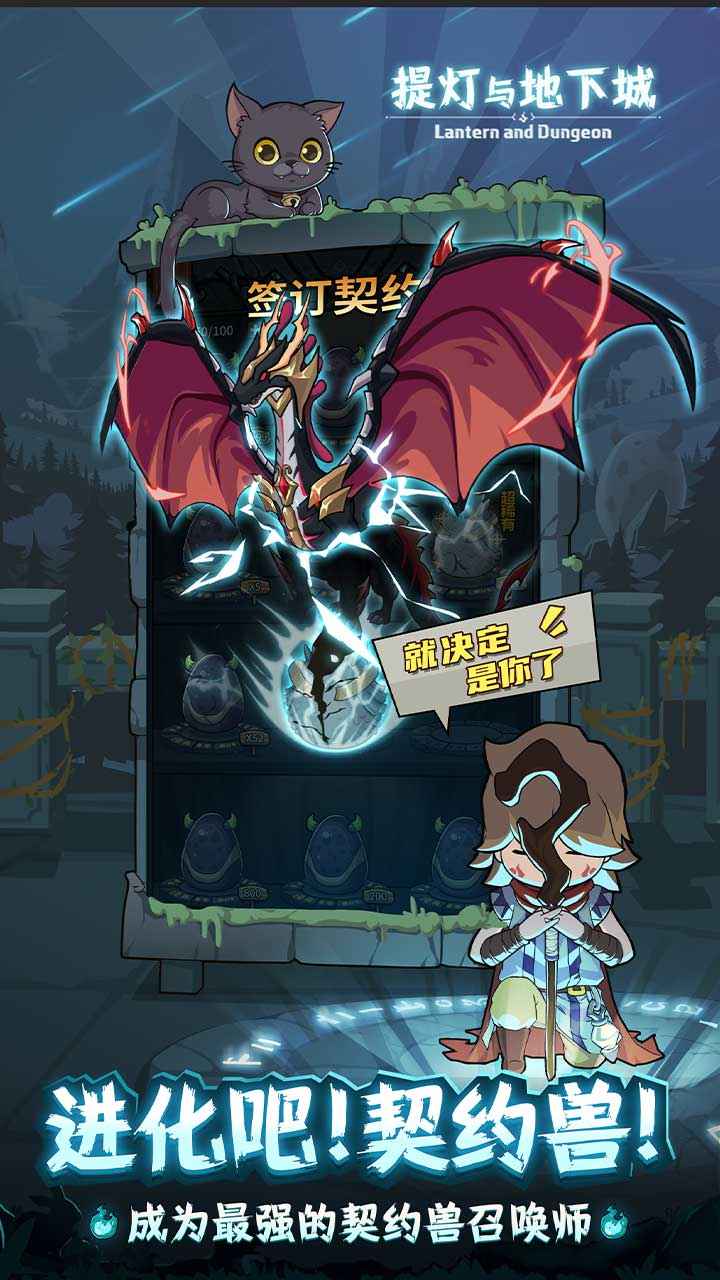 玩家在《提灯与地下城》中,可以收集30多只契约兽,水火地三系元素相互克制,格斗、守护、治愈、超能、冒险等多种类型。并拥有类似宝可梦式的养成体验,有着丰富的成长线,每一只契约兽都可以从蛋种开始培育,培养性格,升级,学习,觉醒,融合以及进化。并且,每一只契约兽都拥有多种进化形态!