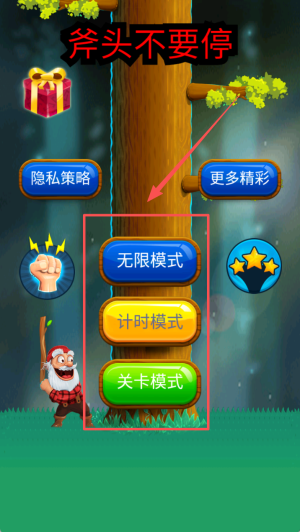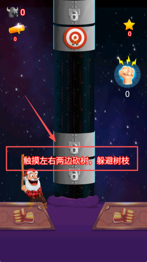 1、选择模式后,点击下方左右按钮控制角色移动,躲避树枝等障碍,同时持续挥砍树木,努力完成砍伐目标。